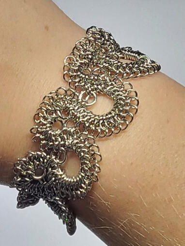 I recently have taken up chain mailing, mostly jewelry, but hopes to expand into clothing/ armor designs.